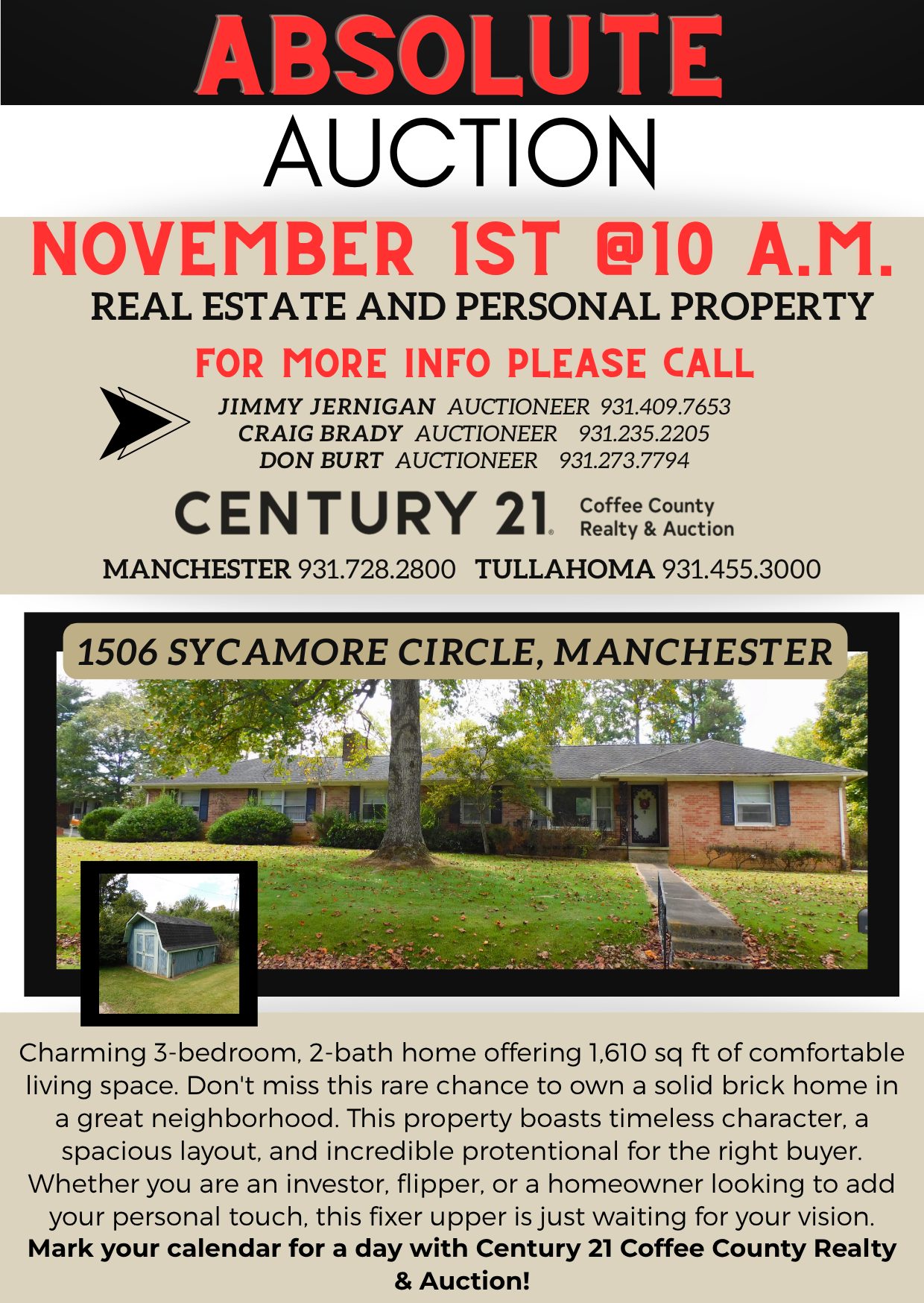 Absolute Auction! 1506 Sycamore Cir-Real Estate & Personal Property-November 1 @10AM